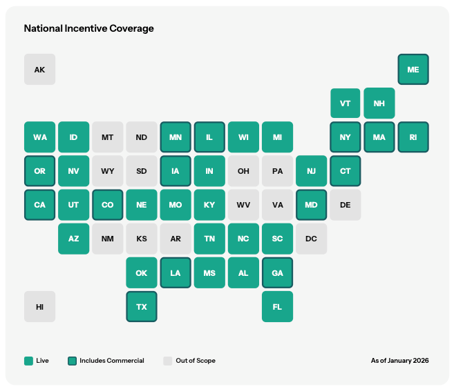 The 2026 Incentive Benchmark Report draws on Rock Rabbit’s database of 155+ programs, 1,000+ active incentives across 36 states, and work with more than 800 contractor partners. The through-line in the data is consistent: incentive availability is no longer the primary adoption constraint. Reliable delivery is.